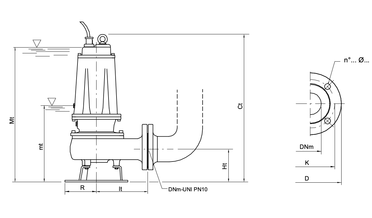 Bomba de drenagem para águas carregadas com impulsor centrífugo de canal único, inteiramente feita em ferro fundido. Graças ao tipo de impulsor, esta bomba gera uma pressão alta. Esta bomba foi concebida para uma utilização extremamente exigente e para bombear líquidos com uma grande quantidade de sólidos suspensos. O sistema de vedação consiste em duas vedações mecânicas lubrificadas em câmara de óleo. Está disponível um sistema de descida para acoplamento automático à tubagem de saída.