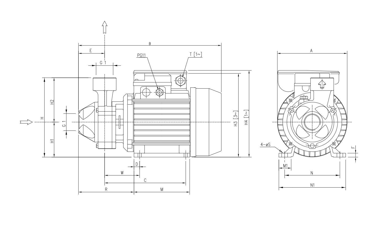 Electrobomba periférica construída em ferro fundido, particularmente adequada para uso residencial, alimentação de pequenas caldeiras, transferência de gás-óleo e para todas as diversas necessidades para atingir altas pressões com pequenas potências instaladas.
