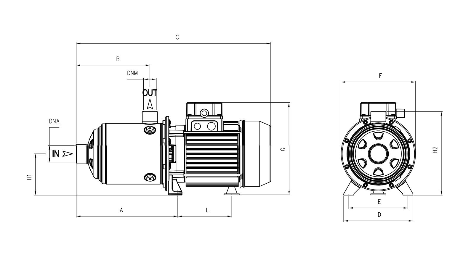 Bombas horizontais multicelulares em aço inoxidável. Para fluidos limpos não carregados: sistemas de pressurização, irrigação, água potável e glicol, tratamento de águas, aquecimento e ar condicionado, sistemas de lavagem.