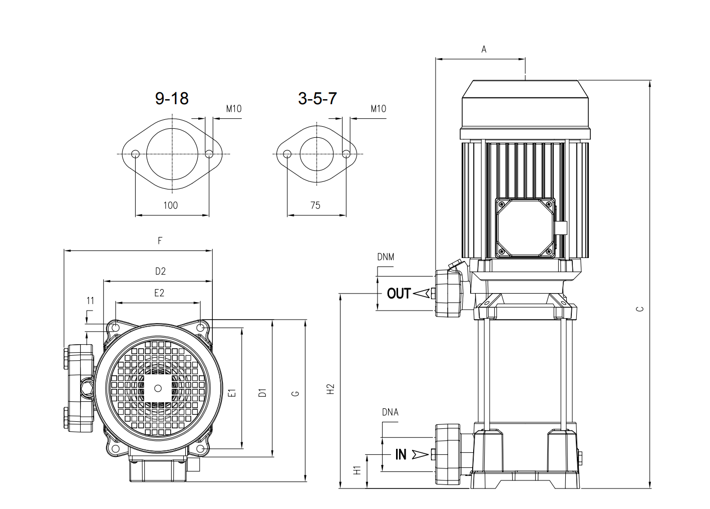 Bombas verticais multicelulares em aço inoxidável. Para fluidos limpos não carregados, sistemas de pressurização, irrigação, água potável e glicol, tratamento de águas, indústria alimentar, aquecimento e ar condicionado, sistemas de lavagem.