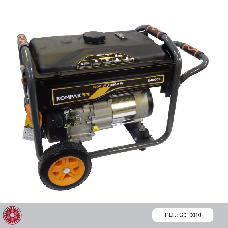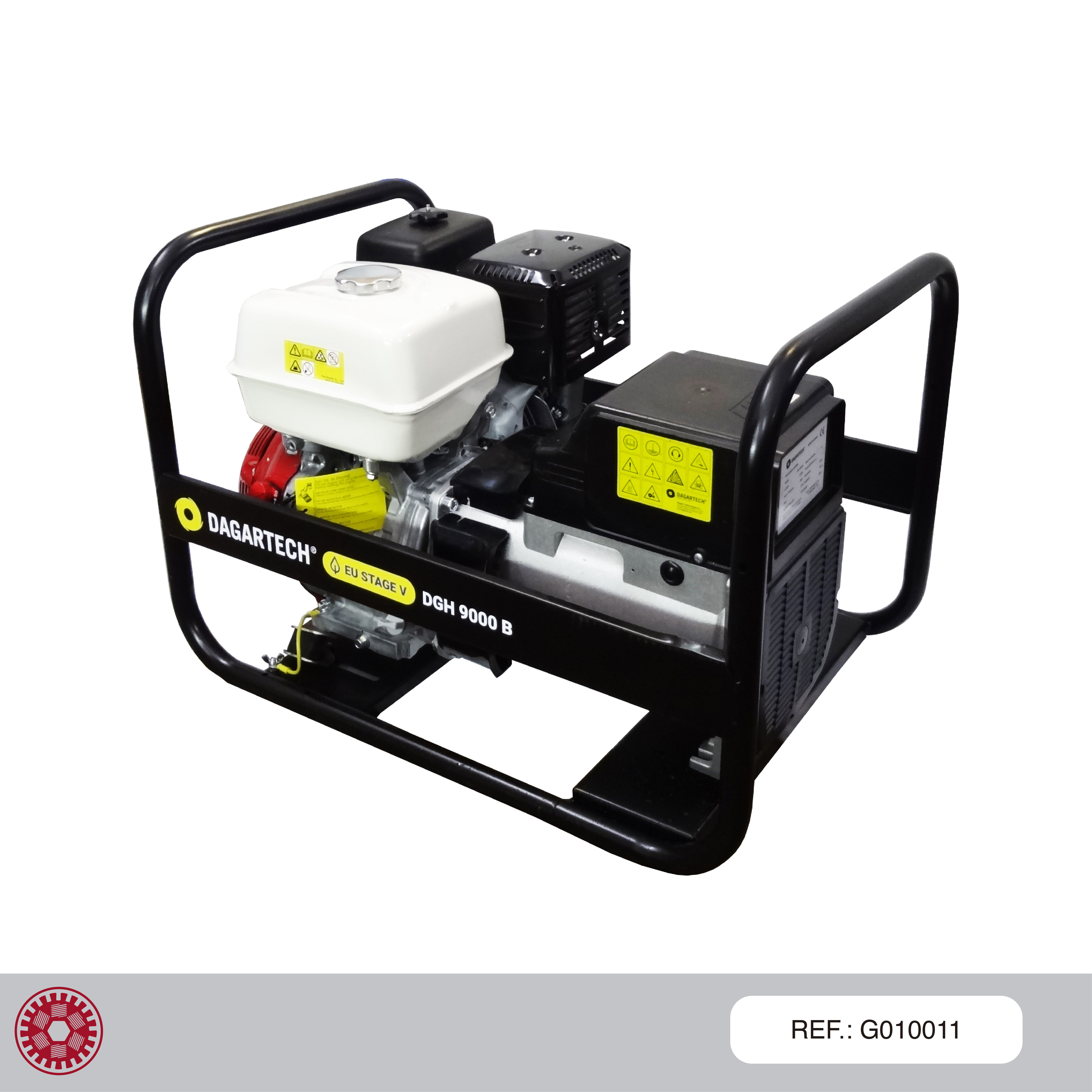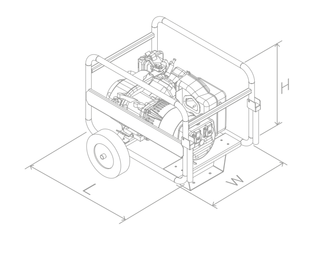 Grupo gerador portátil da Gama Profissional trifásico. Este grupo gerador à gasolina, com arranque manual e chassis estático, oferece a opção de incluir um kit de transporte para facilitar seu transporte e manejo.
