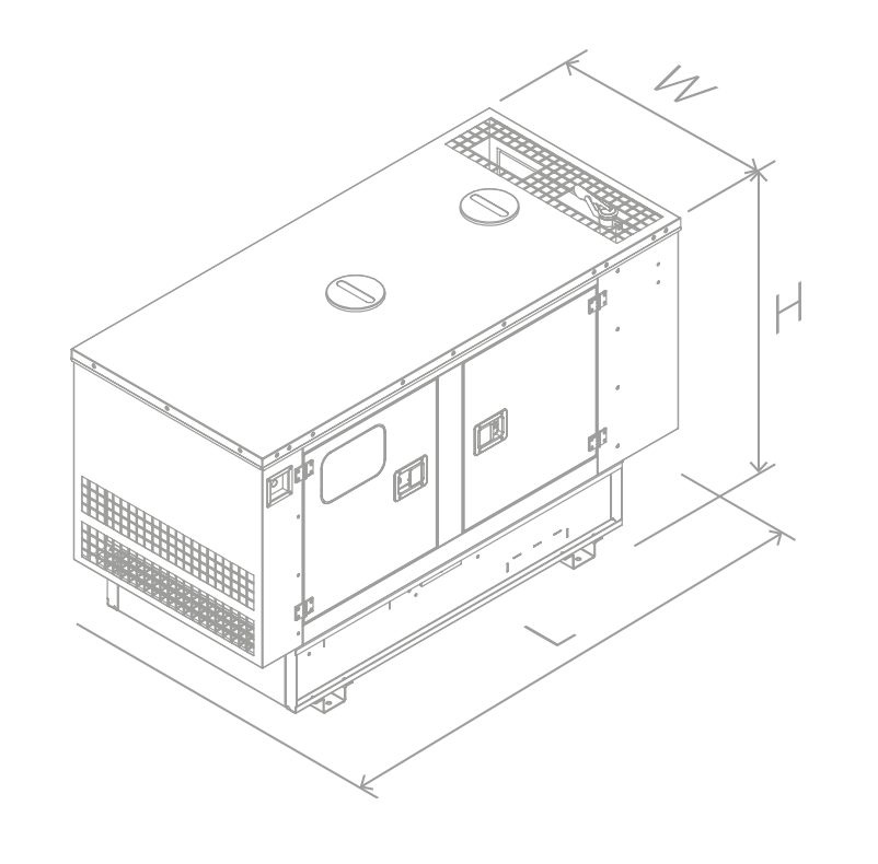 Grupo gerador da Gama Balance Emergência, trifásico e insonorizado, com funcionamento em modo manual, automático, por sinal ou modo test.